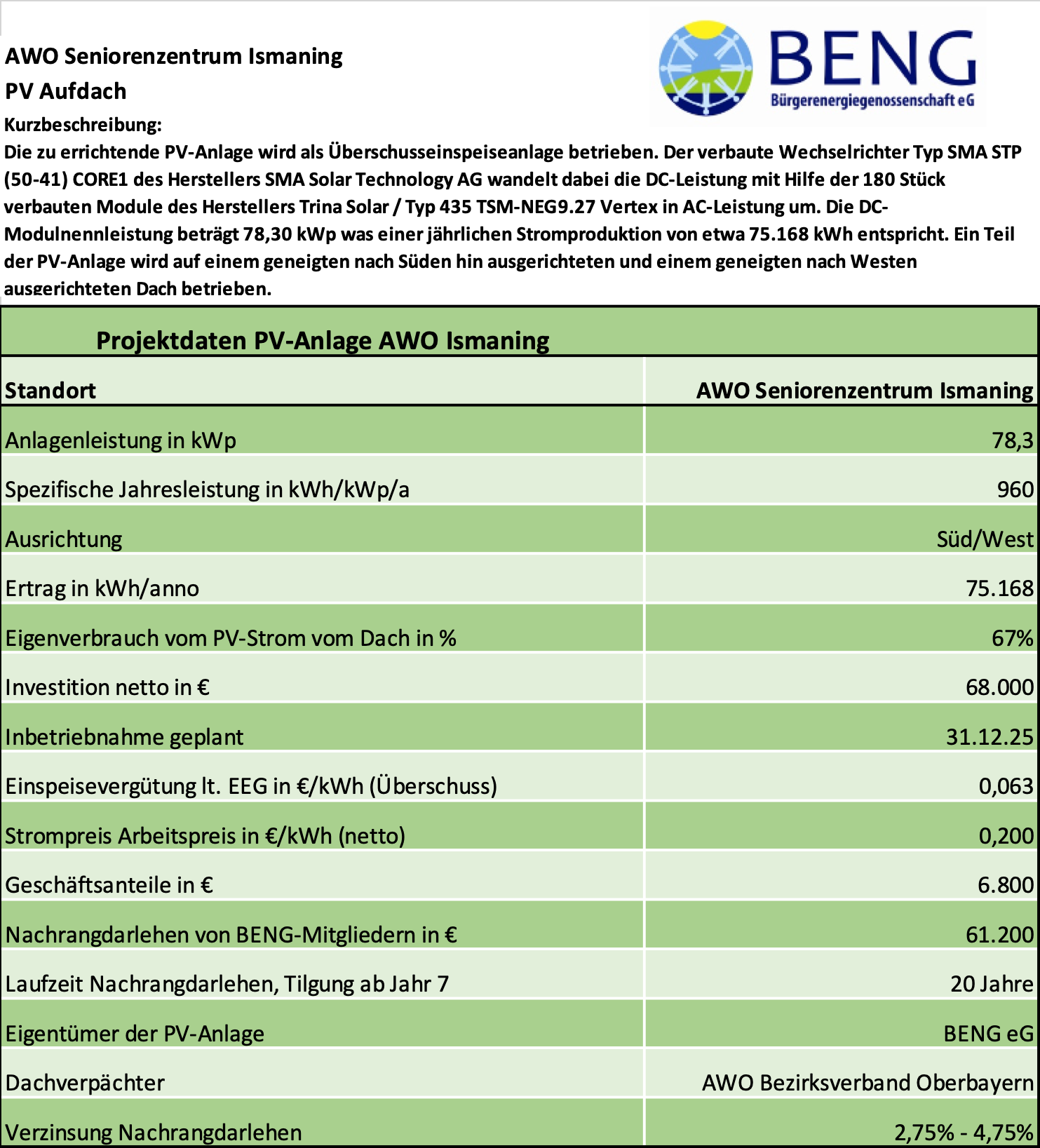 Bitte beachten Sie, dass Beteiligungen nur für BENG-Mitglieder möglich sind! Bürger*innen aus Ismaning haben Vorzeichnungsrecht.