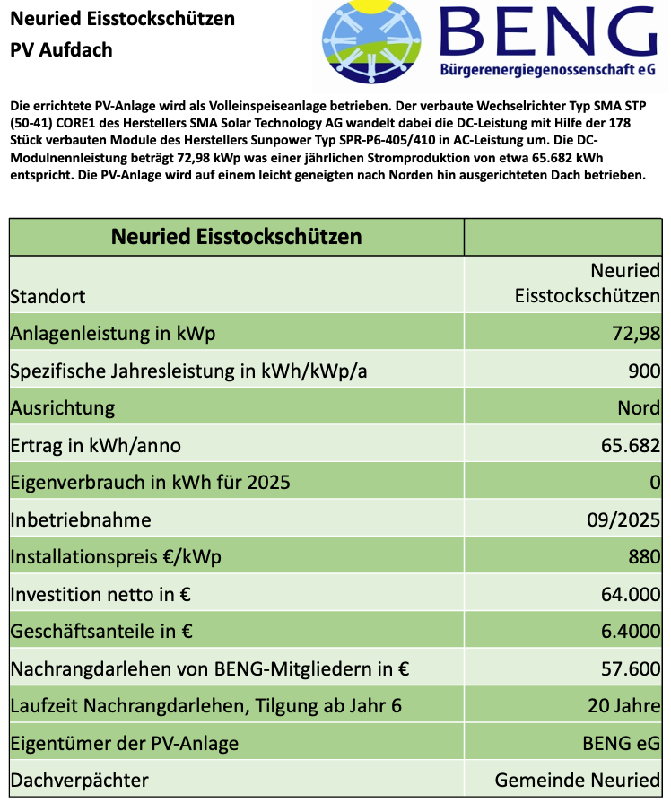 Bitte beachten Sie, dass Beteiligungen nur für BENG-Mitglieder möglich sind! Bürger*innen aus Neuried haben Vorzeichnungsrecht.